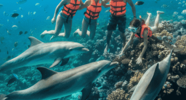 Join the Dolphin House Cruise in Hurghada with two snorkeling stops to watch dolphins, lunch, drinks, equipment, transfers, and onboard entertainment. Only EGP 650 per person.